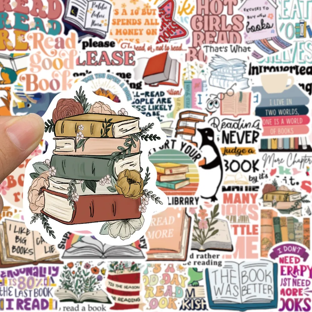 10/50PCS Cute Flower Book Reading Stickers Aesthetic DIY Stationery Notebook Bottle Laptop Luggage Guitar Skateboard Car Sticker