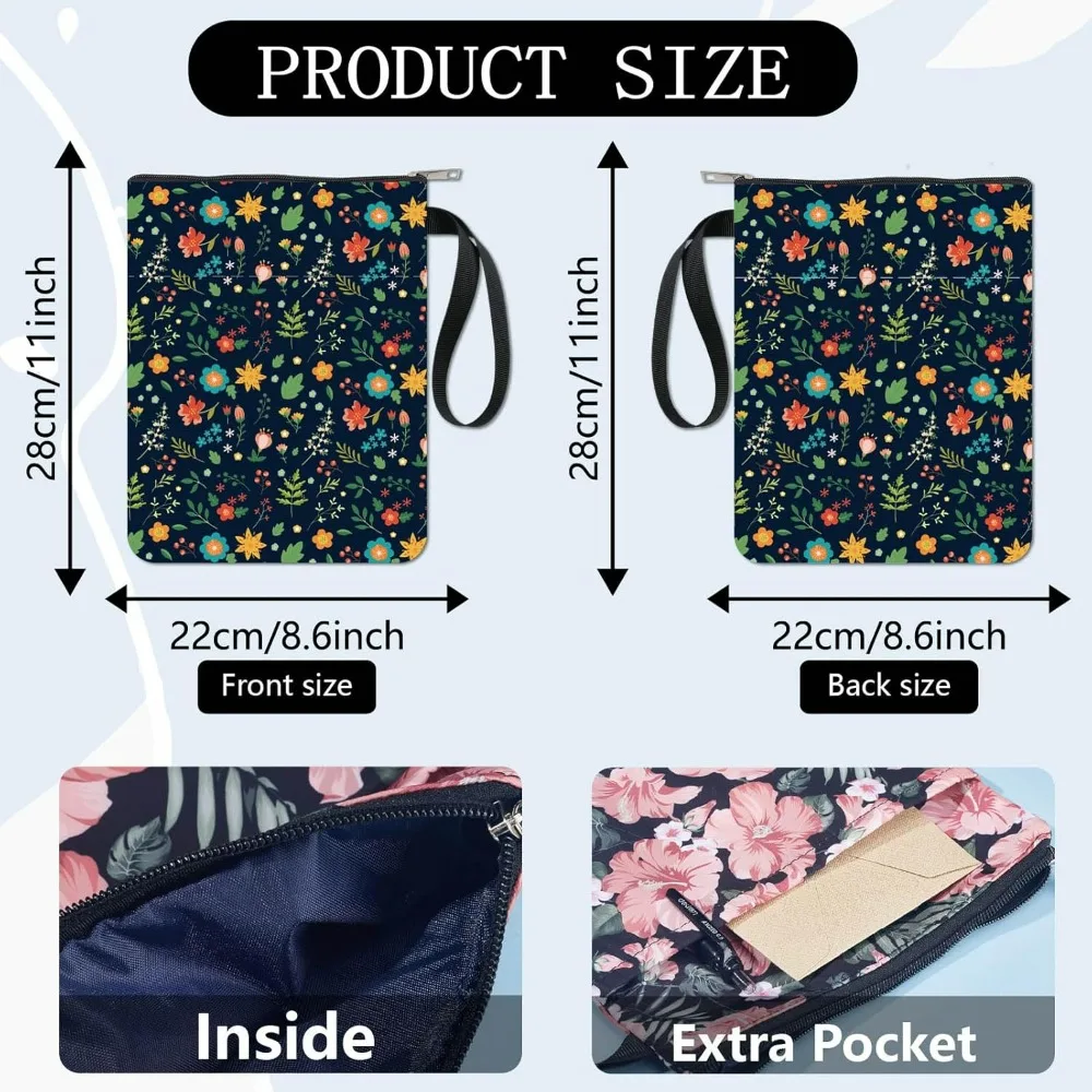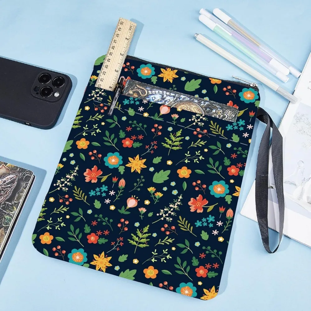 1pc Black Book Sleeves Flower Leaf Book Covers Book Protector for Paperbacks Washable Fabric Cloth Book Cover with Zipper