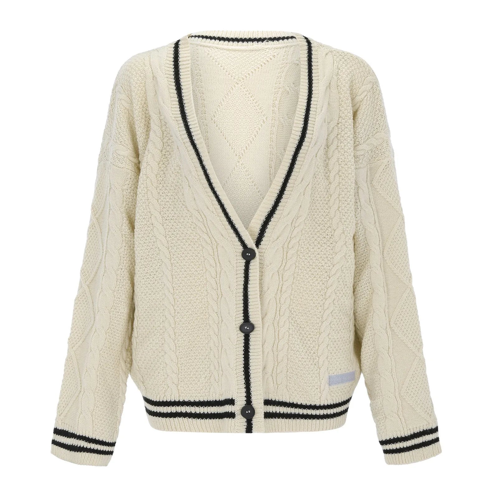 ✨ Cream cable texture with contrast black trim