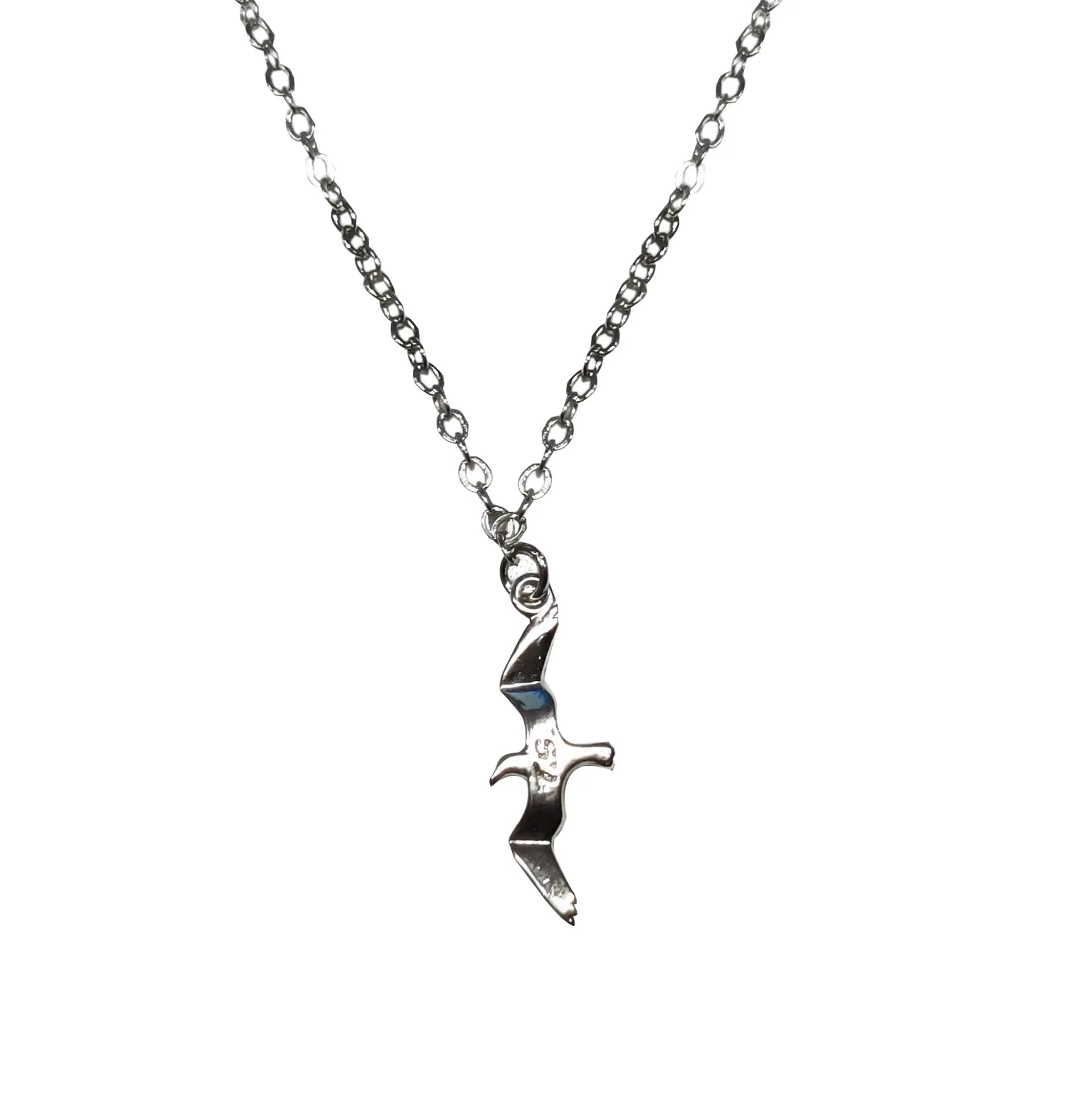 A delicate silver seagull pendant inspired by the dreamy, coastal aesthetic of a certain beloved 1989 era.