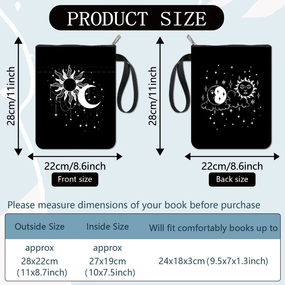 SIZE: book sleeve about 8.66inch (22cm) wide, 11.02inch (28cm) long. Fits most self published books, standard paperbacks, mass paperbacks, and regular hardcovers. Make sure to measure your item before purchasing to ensure that it will work for you.
