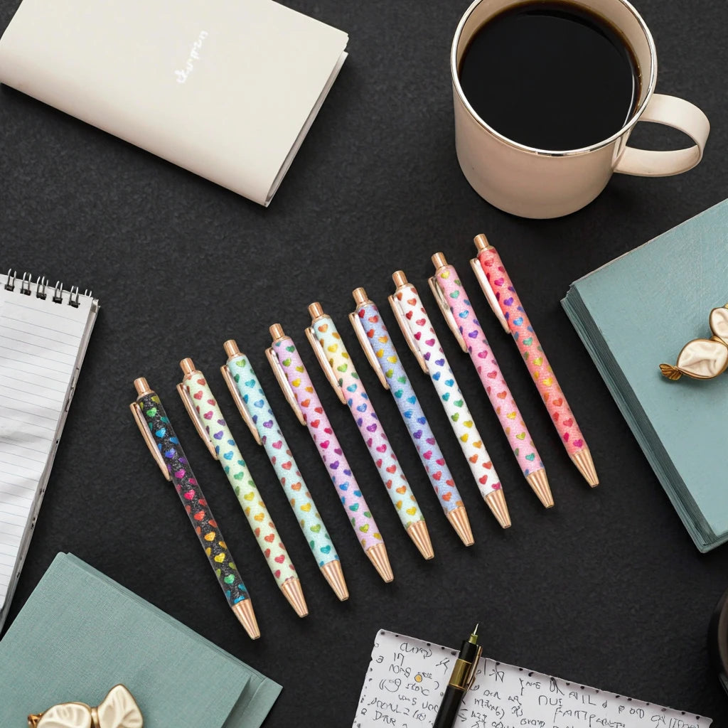 2025 NEW XS Fancy Glitter Medium Point 1.0 mm Ballpoint Pen Retractable Writing Pens with Metal Barrel Pretty Journaling Pens