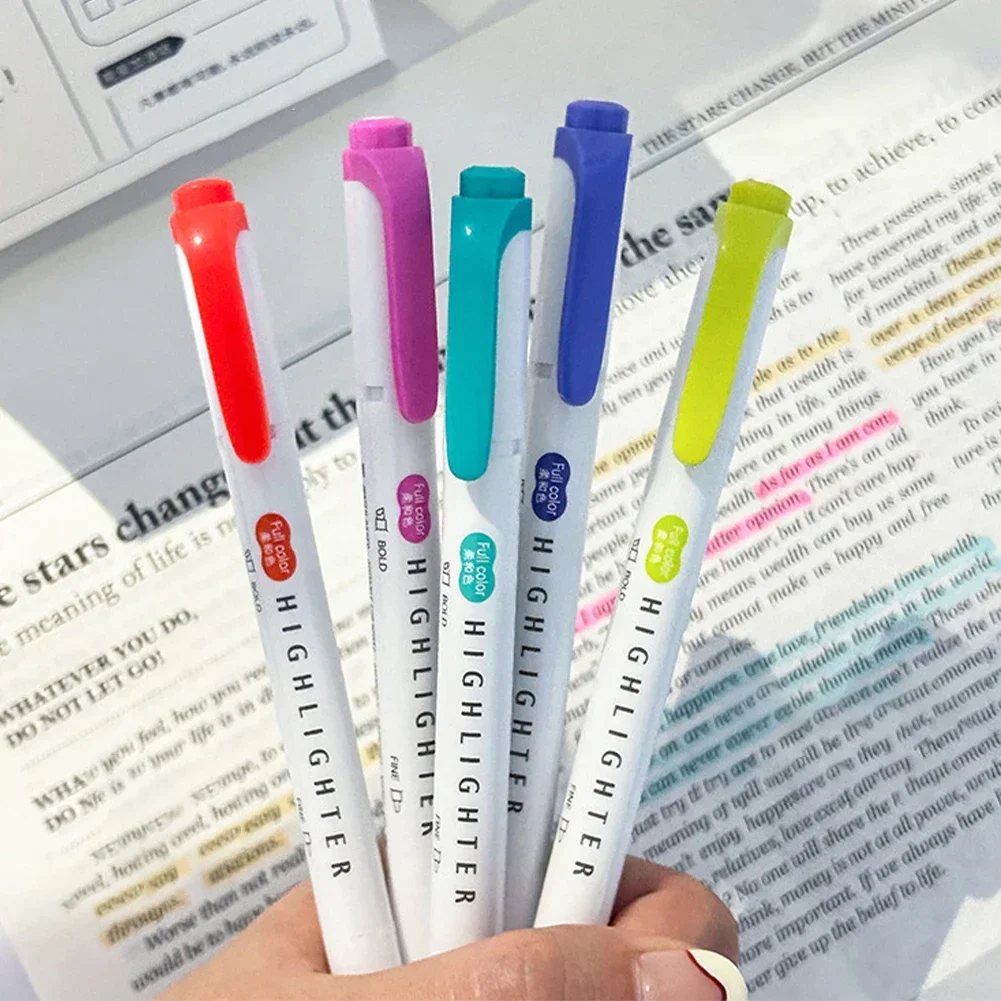 5 Colors Double Headed Highlighter Pen Set Fluorescent Drawing Markers Highlighters Pens Art Japanese Cute Pastel Stationery