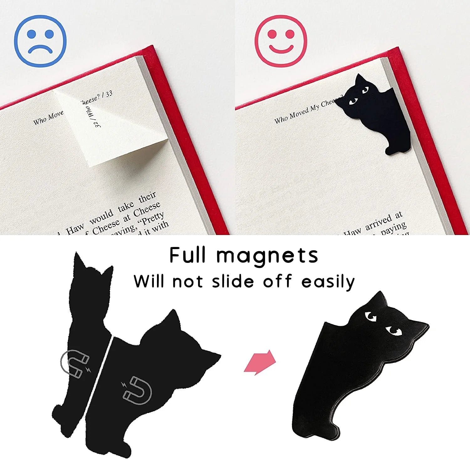 6pcs Black Cat Bookmark for Books Cute Cartoon Magnetic Page Clips Book Marker Unique Reading Gift A7405