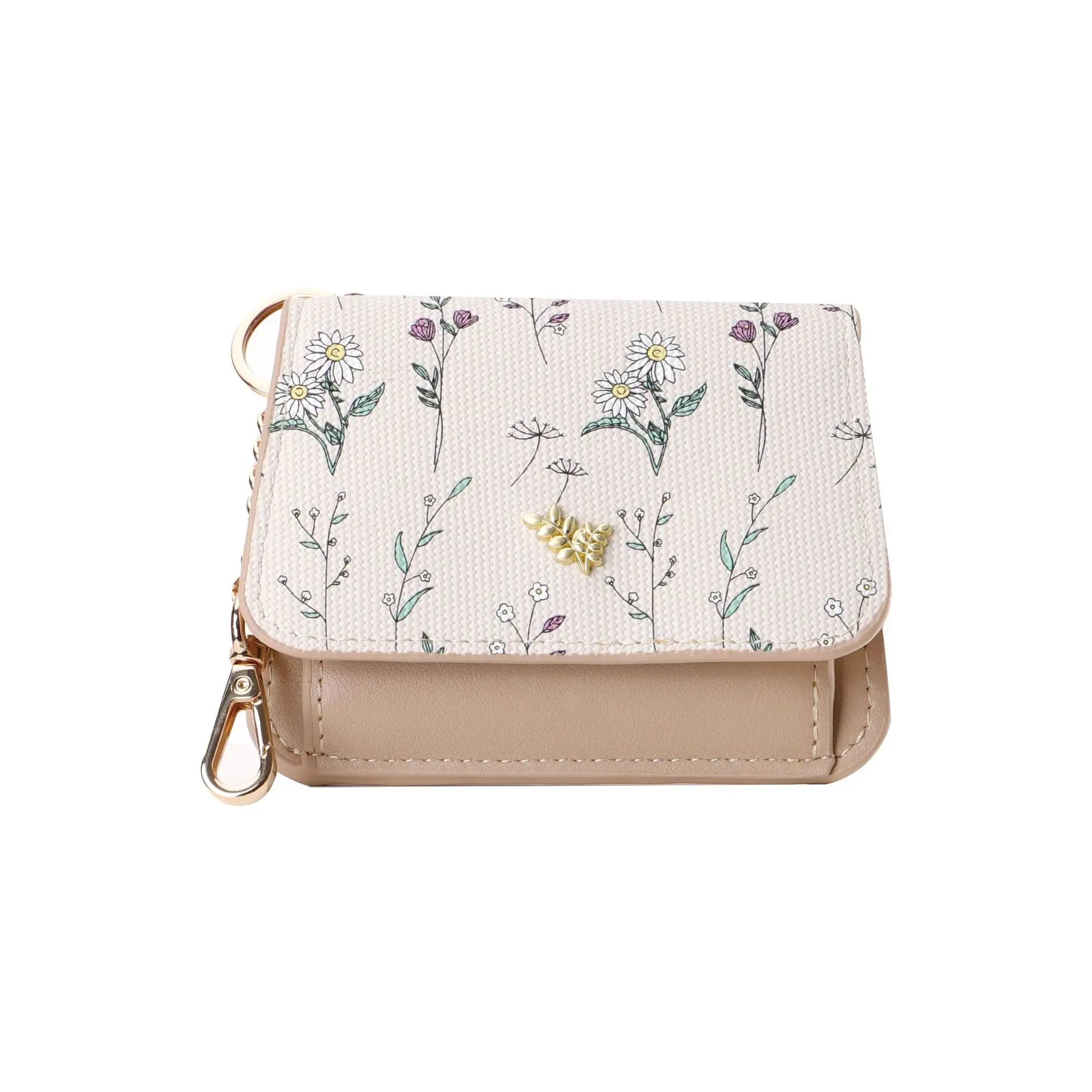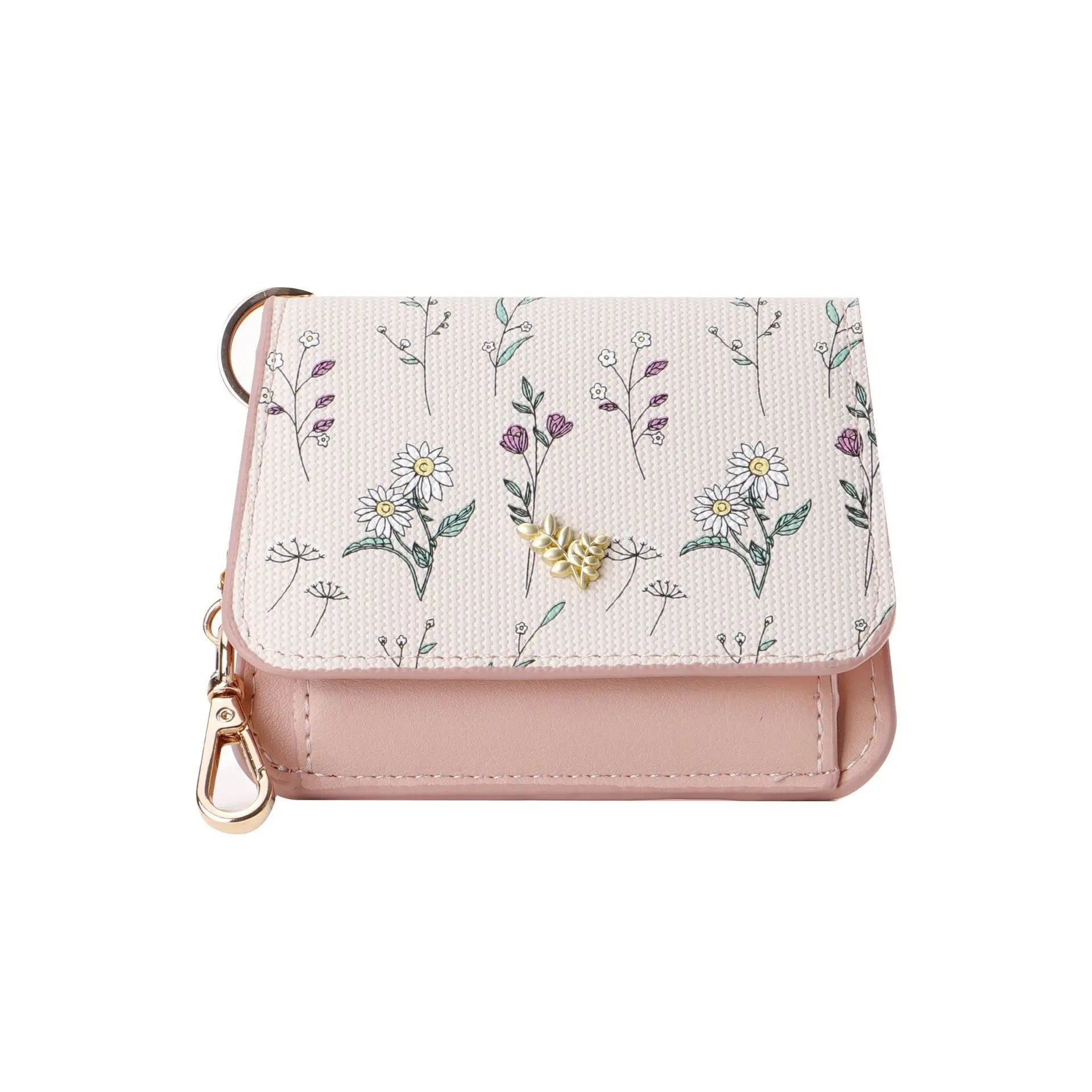 Card Bag Keychain Coin Purses Women's Compact Portable Change Bag Thin Design PU Leather Floral Print Coin Holders for Women