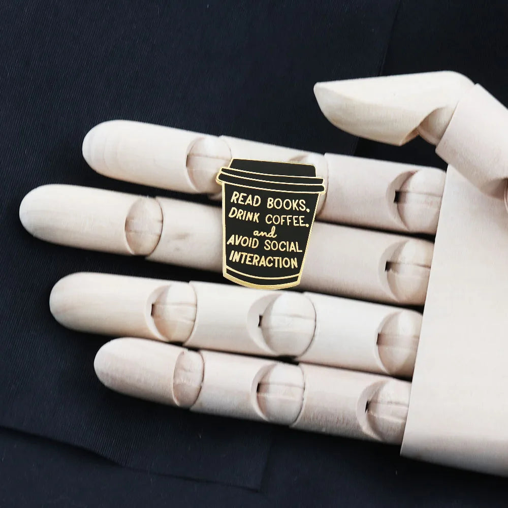 This enamel pin is the perfect accessory for book lovers, introverts, and anyone who considers “social interaction optional.” Featuring a black-and-gold coffee cup design with the quote “Read Books. Drink Coffee. And Avoid Social Interaction,” it’s a fun, relatable statement piece for jackets, backpacks, tote bags, and reading journals.